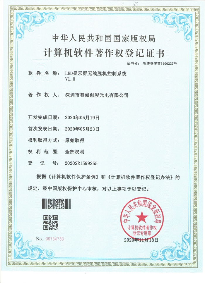 計算機軟件著作權登記證書
