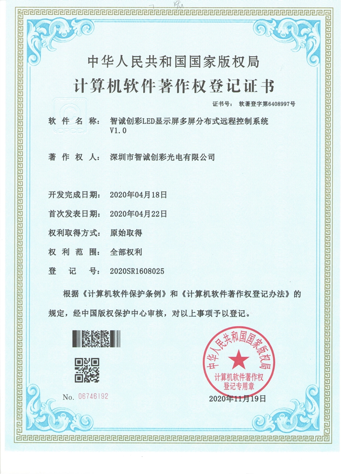 計算機軟件著作權登記證書